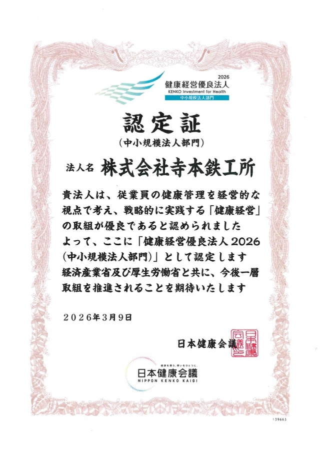 日頃から取り組んできた、社員の健康づくりや働きやすい環境づくりが評価され、大変嬉しく思います。