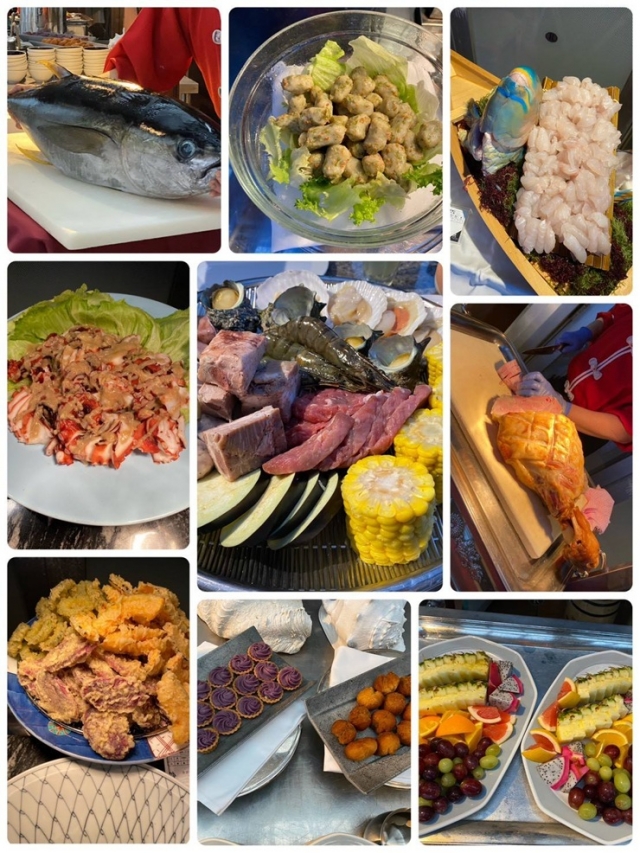 あいにくの雨で野外BBQは実施できませんでしたが、屋内での豪華な夕食(BBQや沖縄料理),マグロの解体SHOWを楽しみながら、エイサー太鼓の演武も観賞することができました。