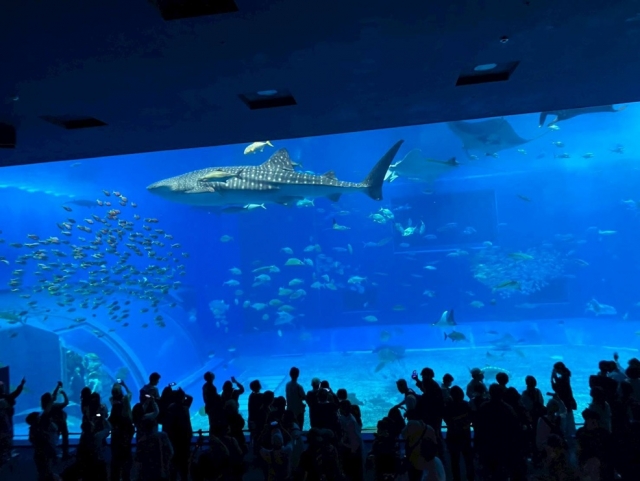 沖縄の豊かな海を再現した館内では、色とりどりの魚たちやサンゴ礁、そして巨大水槽を悠々と泳ぐジンベエザメやマンタの姿に圧倒されました。
