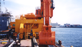 At Teramoto Iron Works, we deliver JIS-type pulley production and products such as marine cargo handling fitting blocks and hoisting attachments/ hooks, including large equipment such as derrick rigs, derrick crane posts, and working barge equipment.